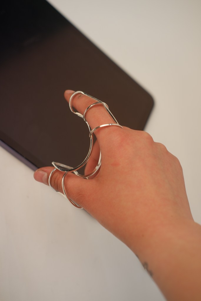 presents the ‘two thrumb preparate for tapping’ gesture of using screen, aims to suggest a potential growth route of thumbs by squeezing.