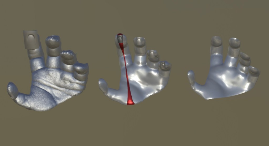 The gap at the lower end of the Anchor expels excess pulp from the little finger to achieve contraction, the melted fingertip shape represents the degradation and devel- opment direction of the little finger of less using.